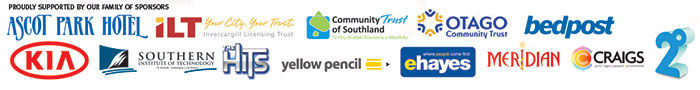 • Allied Concrete • The Southland Times • Creation Signs • McCallums Group • Rothbury Insurance Brokers • World Health and Fitness • Dianne Manson - Nationwide Images New Zealand • ILT Stadium Southland • Strawberry Sound • Kinetic Health • Roslyn Physiotherapy • Splash Palace - Invercargill • Unichem Waikiwi Pharmacy • NZHealth.delivery • Impress Clothing & Accessories • Fusion Fitness South • Pernod Ricard • APN Outdoor • 2XU • Omni Graphics
